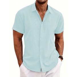 Men's Hawaiian Shirt - Coconut Tree Sailboat Print, Trendy & Comfy Short Sleeve Button Up for Summer Beach Vacations