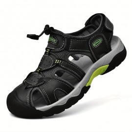 Men's Non-slip Hook And Loop Sandals, Durable Quick Dry Closed Toe Beach Shoes, Spring And Summer
