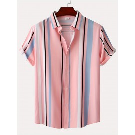 Retro Geometric Pattern Men's Casual Short Sleeve Lapel Shirt for Summer Outdoor - Retro Carpet Texture