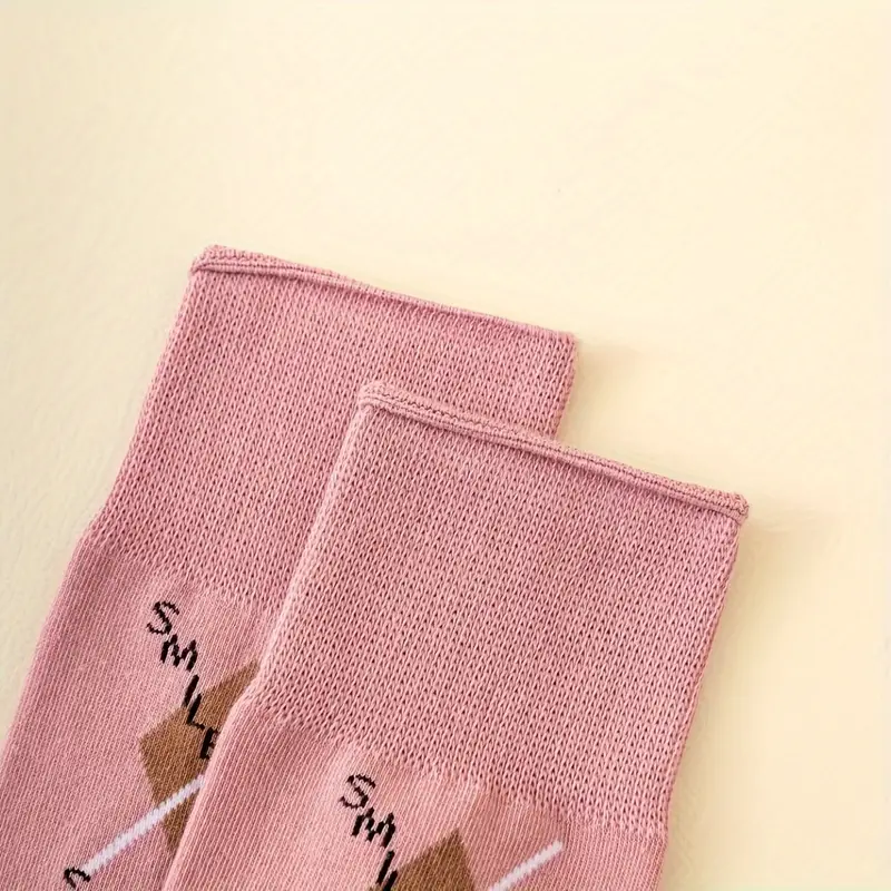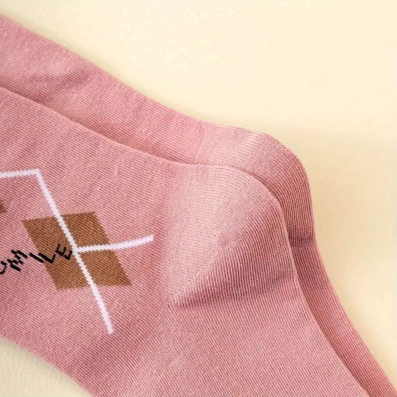 5 Pairs Argyle Pattern Socks, Retro & Warm Mid Tube Socks, Women's Stockings & Hosiery